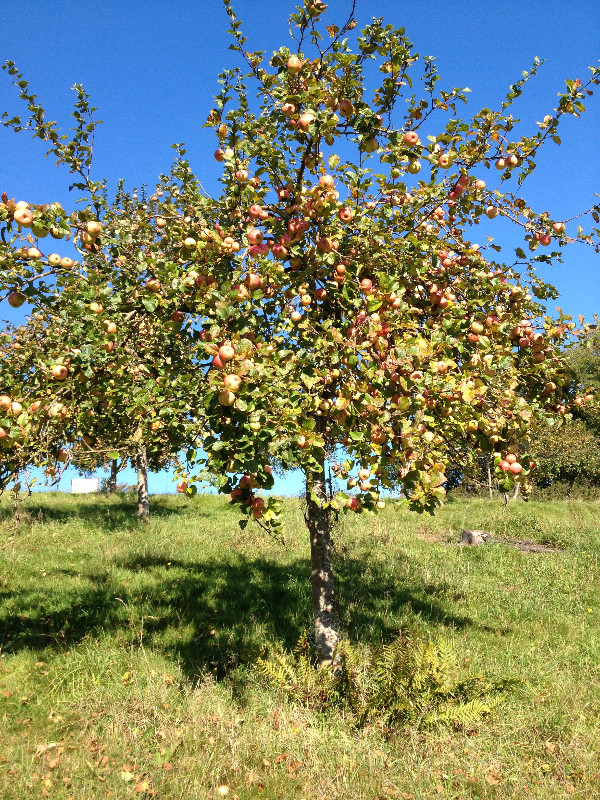 Thirty eight acres of orchards, cob nut and walnut plantations, meadow land and lakes, all organically managed. The apples are all traditional Cornish varieties, and are pressed by Cornish Orchards for their Heritage Cider range.